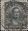 5c Siena rojizo, Gillet. Sello con cuatro margenes, filigrana 3, ( R ) y matasellos tipo A pleno y muy suave. V.C. $ 300.000. |