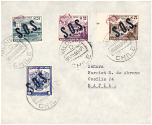 En forma privada, el Centro Filatélico de Valdivia sobrecargó valores de la serie del Cuarto Centenario de Valdivia, el sello de la Exposición Filatélica Nacional y el del Centenario del Instituto Alemán de Valdivia con la llamada de auxilio "S.O.S." en negro y un timbre en rojo.