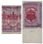 MARINAS: Llamase comúnmente así en Chile, a los sellos oficiales impresos por el Ministerio de Marina de Chile entre los años 1906 y 1907. |