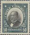 Monumento a Arturo Prat. Litografiado por Henry Gillet en color naranja sobre papel crema. Sello en condición nuevo sin goma. V.C. $ 6.000. |