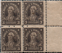 5c Rojo En Prueba de Plancha en cuadro para sellos de Estancos. Pruebas sin filigrana, Grabados, sin dentado, sin goma y sin uso. Cuadro con los cuatro sellos de 4 margenes. Bonito cuadro. |